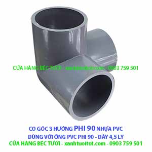 Co góc 3 hướng nhựa PVC phi 90, tiện dụng khi lắp đặt các công trình nước sinh hoạt cũng như thiết kế các hệ thống tưới phun nước.